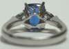 corner claw set to the centre with a fancy rectangular cut Tanzanite, flanked to either side by a triangular cut diamond, mount stamped 18K
