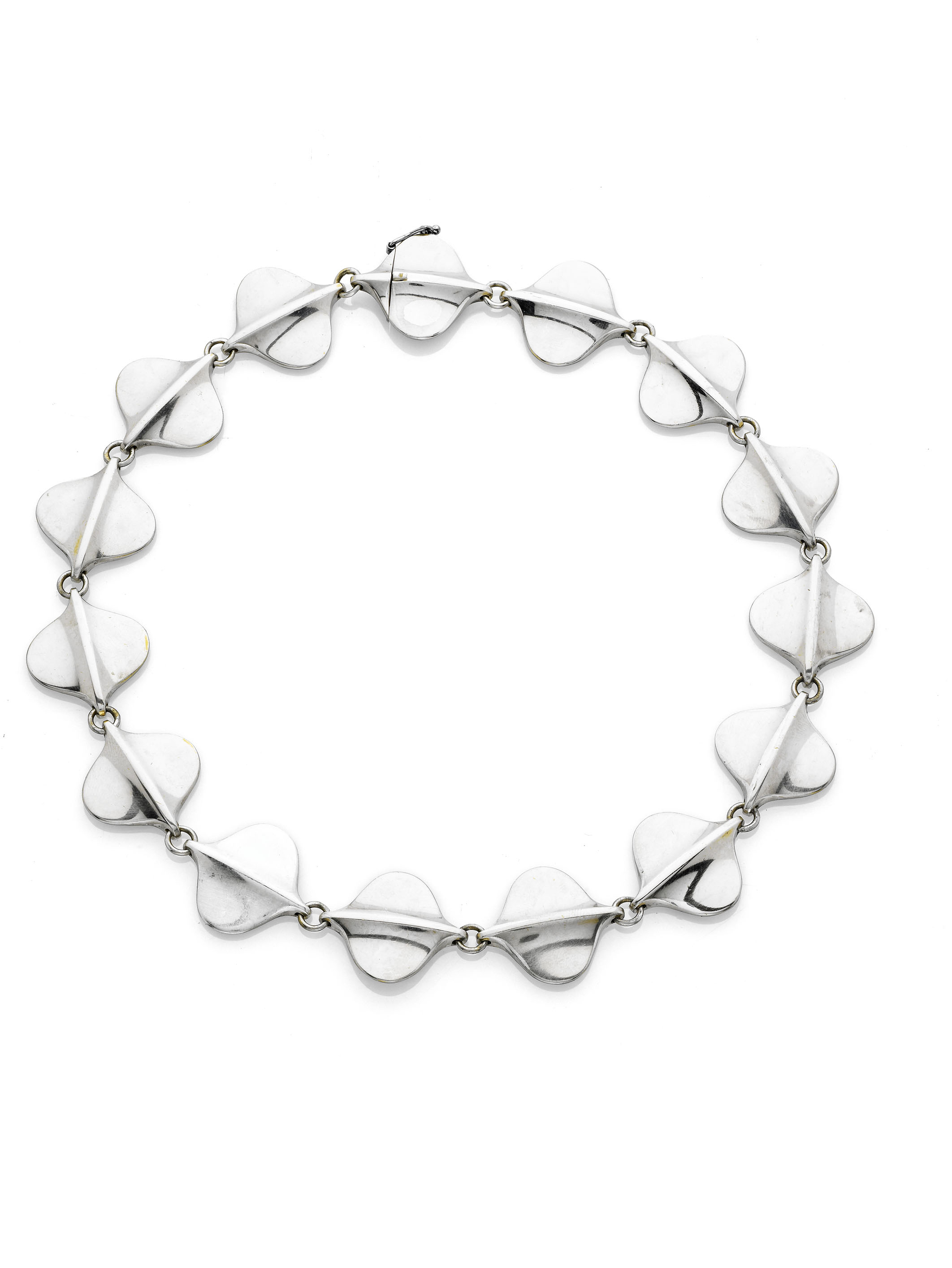 with import marks for London 1973, also stamped 925 S DENMARK, with post 1945 maker's mark, also numbered 176, composed of shaped oval links, conjoined by circular links, with concealed clasp and safety clip