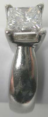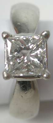 corner claw set with a princess cut diamond, with accompanying IGI appraisal summary numbered 30436095 and dated 2/18/2000, stating estimated: carat weight 1.52cts; colour grade: E-F and clarity I (graded mounted)