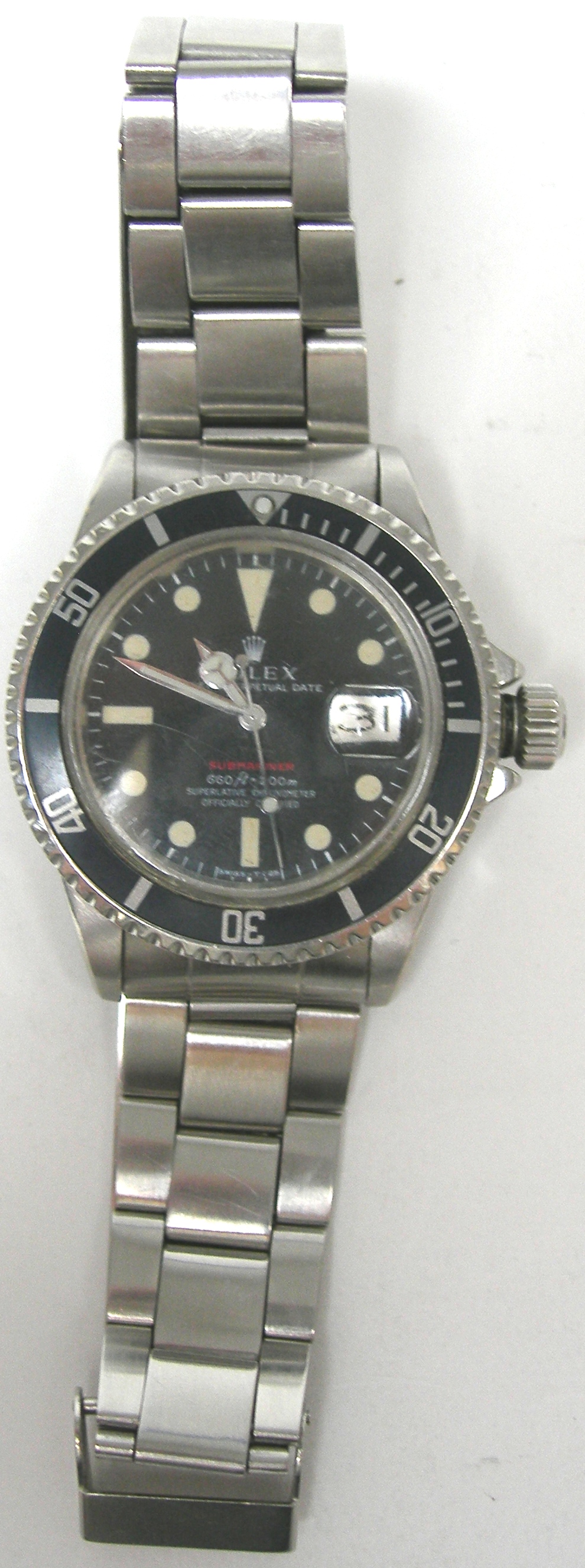 stainless steel cased, the black dial inscribed ROLEX OYSTER PERPETUAL DATE and SUBMARINER 660ft = 200m SUPERLATIVE CHRONOMETER OFFICIALLY CERTIFIED, with date aperture, screw down winder and stainless steel bracelet