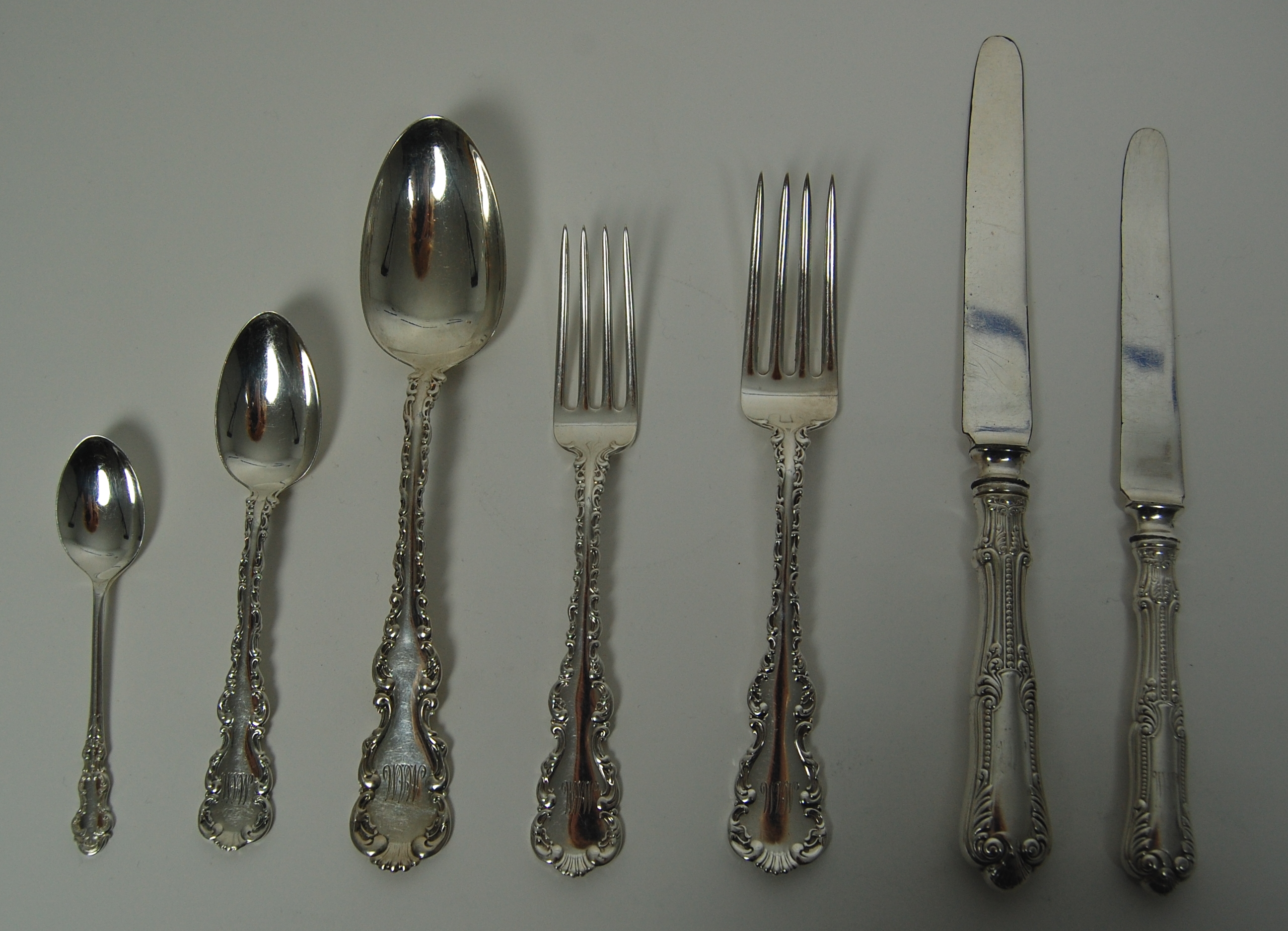 A set of American silver Louis Quinze pattern table silver