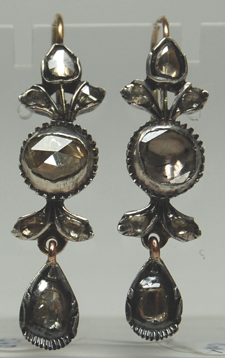 A pair of Georgian diamond pendant earrings,