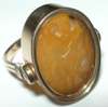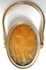 the swivelling front collet set with a large oval cut yellow agate intaglio, incised with an embracing couple, with stirrup form shank