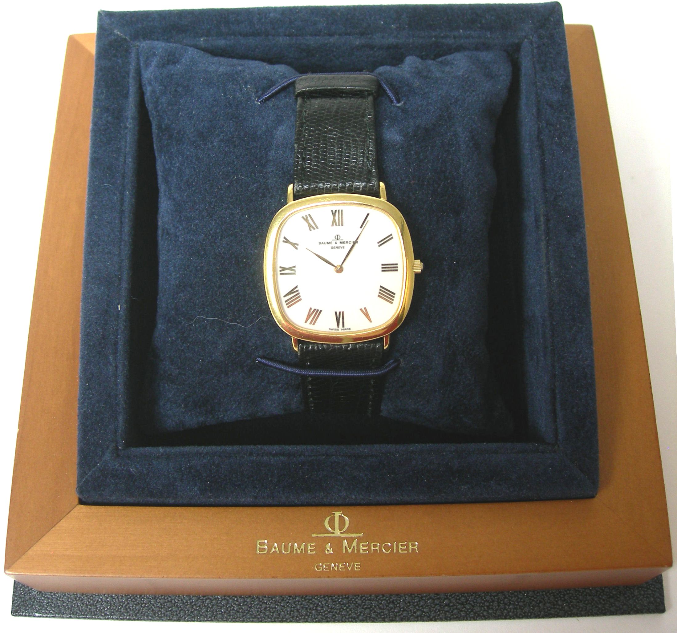 BAUME ET MERCIER - a boxed gentleman's gold cased wrist watch