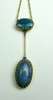 composed of fine belcher form links, claw set to the centre with an oval cut black opal, surmounting a knife bar, suspending a larger similarly cut black opal