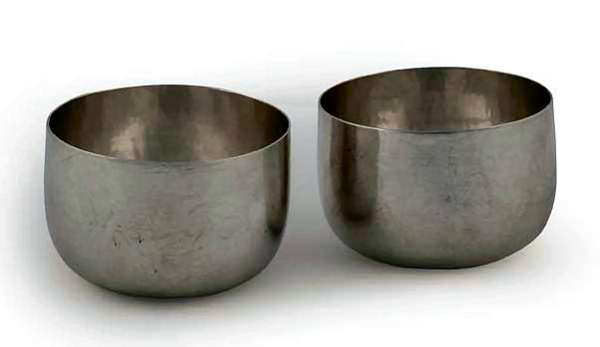 7.3cm diameter, 5cm high, 3.3oz and 3.2oz