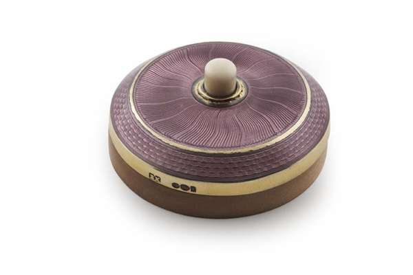 By Work master Erik Kollin on a circular birch wood base, marked E.K. and London import marks 1905, scratched inventory number to base,