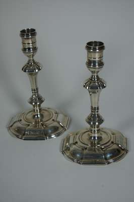 A pair of George II taper sticks