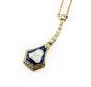 composed of fine belcher form links, the front of tapering design, millegrain collet set to the centre with a fancy shaped triangular cut diamond, within a border of French cut sapphires and outer border of graduated early round brilliant cut diamonds