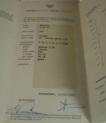 Diamond weight 2.12cts, Colour Grade J, Clarity Grade VS2