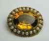 claw set to the centre with a large oval cut citrine, within a ropetwisted border and outer borders of freshwater half-pearls (untested) and circular cut rubies