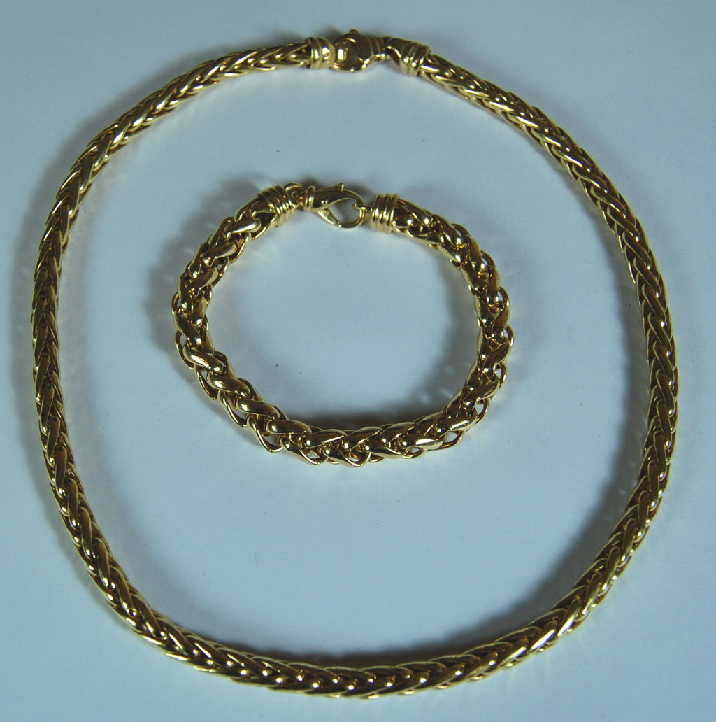 each of cylindrical section, composed of large herringbone style links, with large circular hinged clasps, stamped 750 ITALY