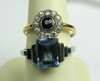 channel set with a trap cut spinel (likely to be synthetic), flanked by stepped shoulders, the shank with French control marks, Height of ring to front 0.9cm and an early 20th century sapphire and diamond set floral cluster ring, millegrain set to the centre with a circular cut sapphire, within a border of twelve old European cut diamonds (2)