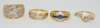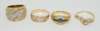 A group of four diamond and gem set rings