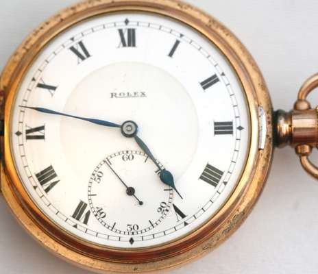 to include a Rolex gold plated hunter cased pocket watch; a pair of 9ct gold cufflinks, with oval engine turned and torpedo shaped terminals, cased; together with a 9ct gold Albert chain, composed of graduated curb form links, with T-bar suspension (3)