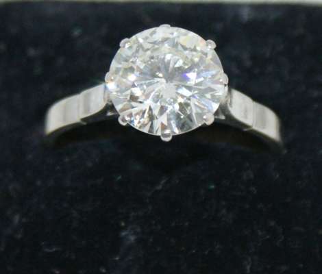 Estimated diamond weight 2.75cts. Estimated diamond grades: colour K/L; clarity P1. However, please note that diamonds cannot be accurately graded when mounted.