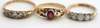 showing St Peter's Square within a blue border and rope twist gold border, together with two small five stone diamond rings and a garnet set ring (4)