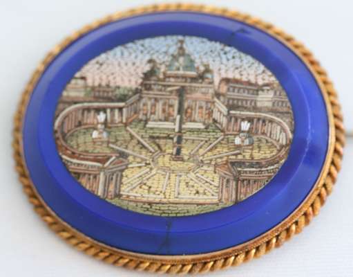 A Victorian micromosaic oval brooch