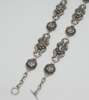 with maker's mark for 1915-27, also stamped 830 and 10, composed of stylised foliate scroll form links, each collet set to the centre with an oval cut moonstone cabochon, interspersed by stylised flowerhead form links, with simple T-bar clasp