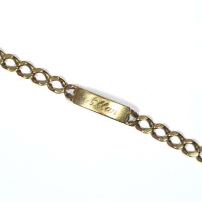 composed of flattened curb form links, with central rectangular plaque inscribed ALLAN in script and LOVE FROM LAURA to reverse, with concealed clasp and safety clip