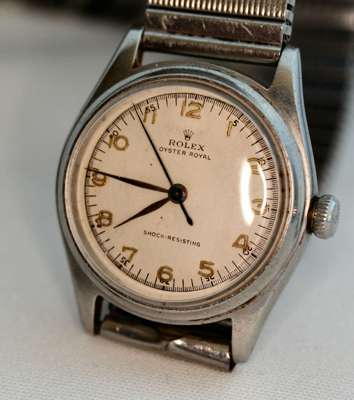 Oyster Royal, off white dial, gilt Arabic numerals, blued sweep second hand, screw down winder
