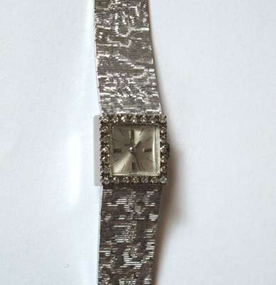 OMEGA - a lady's 18ct white gold diamond set wrist watch,