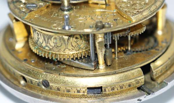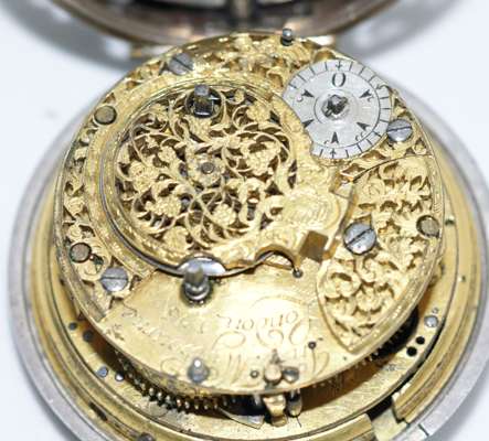 An 18th century silver pair cased pocket watch with repeater action