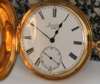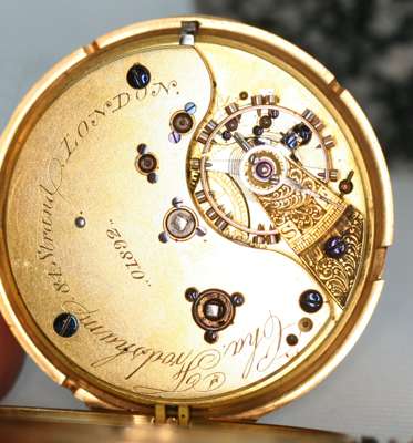 in a demi hunter case, enamel numerals and engine turned detail, the dial inscribed 'Arnold, Chas Frodsham, 01892, subsidiary seconds dial, movement inscribed 'Chas Frodsham 84 Strand, London 01892' presentation inscription to the cuvette dated 1875