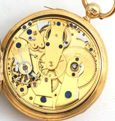 An 18ct gold half hunter cased, keyless wind, minute repeater, pocket watch