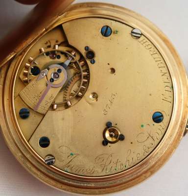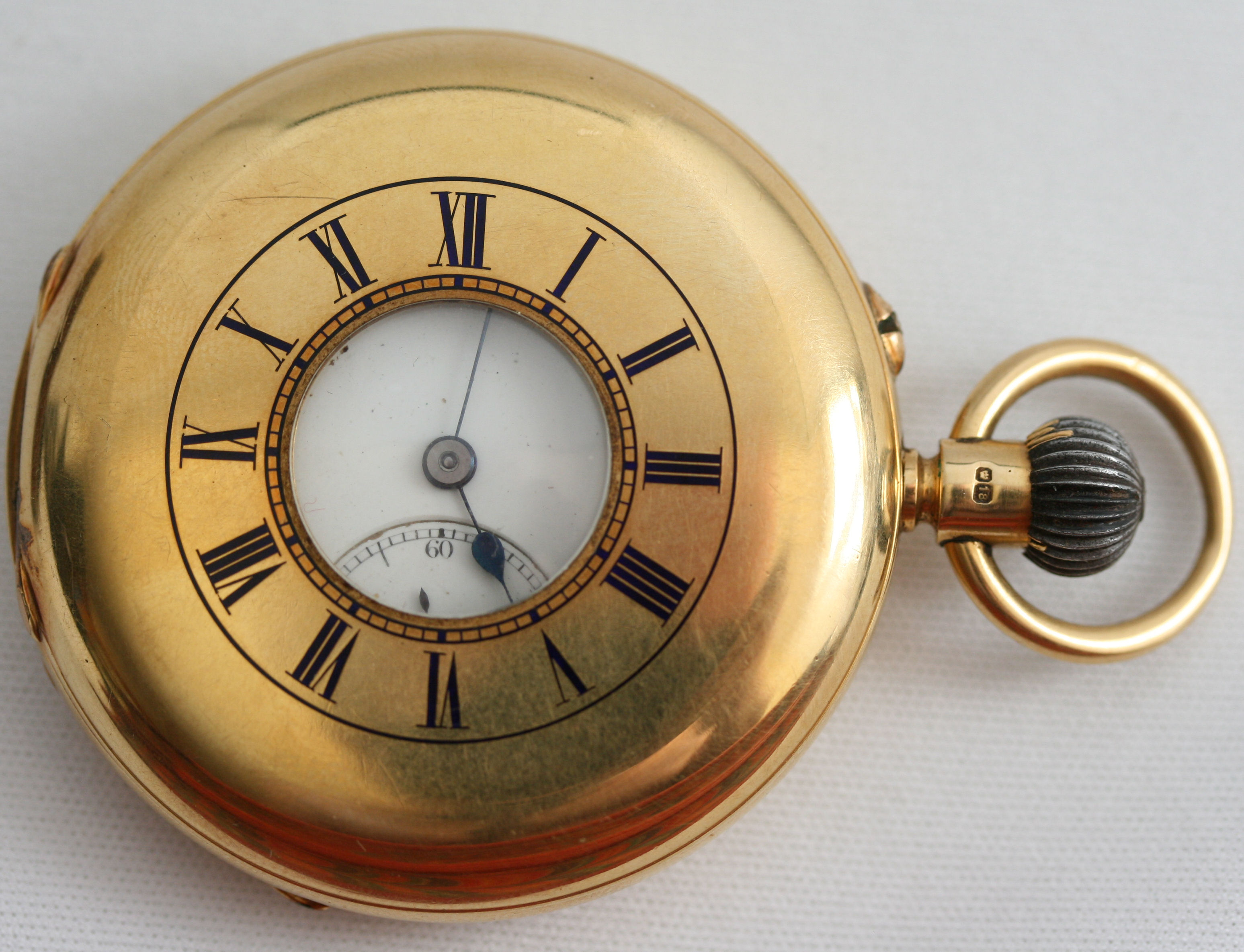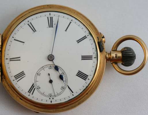 in demi-hunter case, with blue enamel numerals, plain dial with subsidiary seconds dial, keyless wind movement inscribed Alex Ritchie Edinburgh and numbered 6743