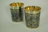 A matched pair of early 19th century Russian silver gilt and niello decorated beakers