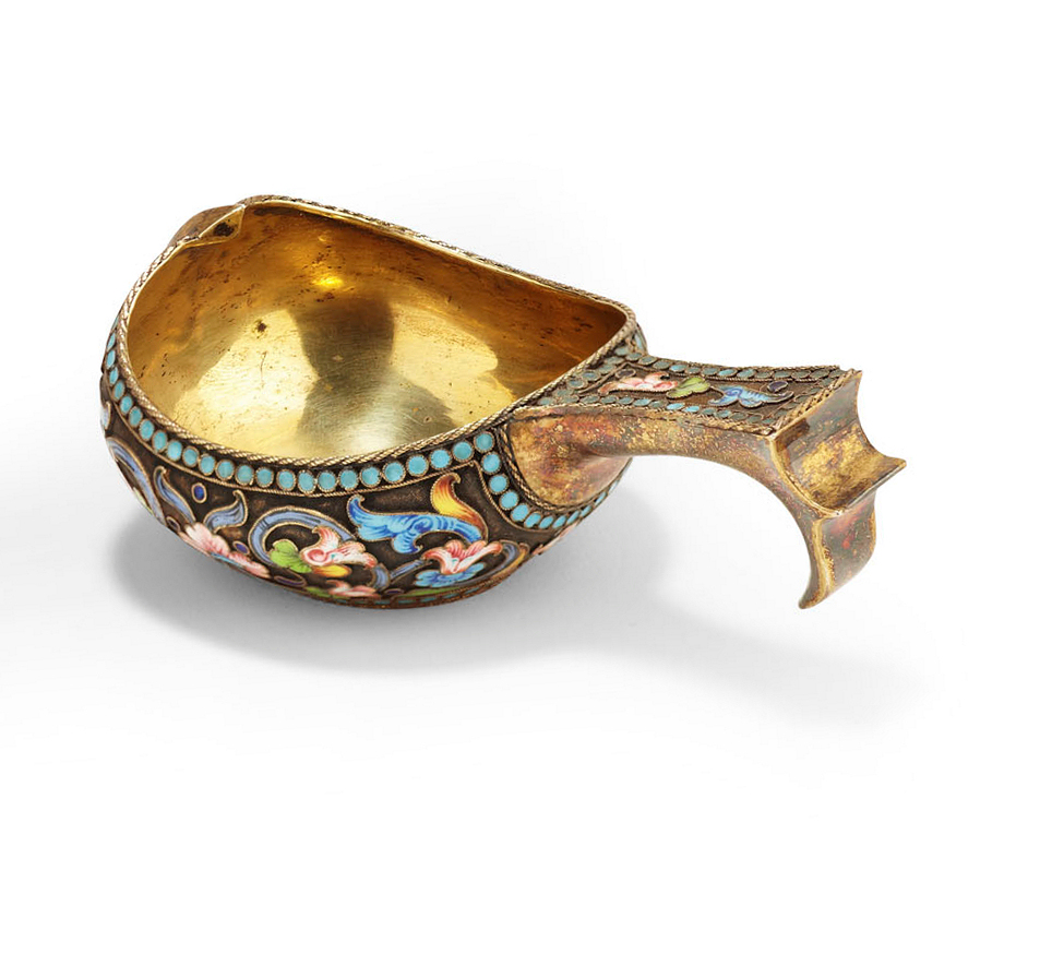 Moscow 1899-1908, maker AN in cyrillic, of traditional form, turquoise border, scrolling enamel body