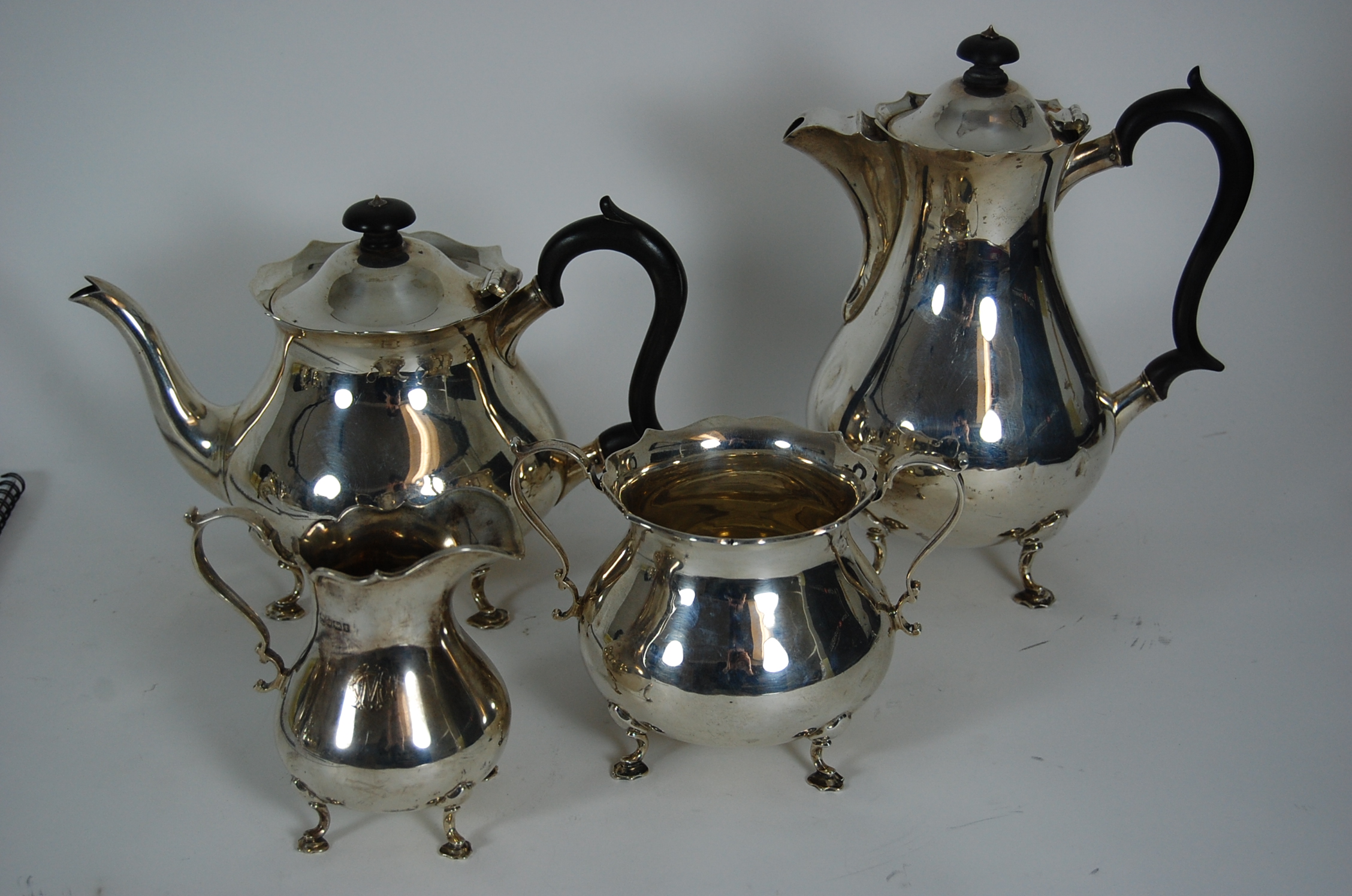 A matched four piece tea and coffee service