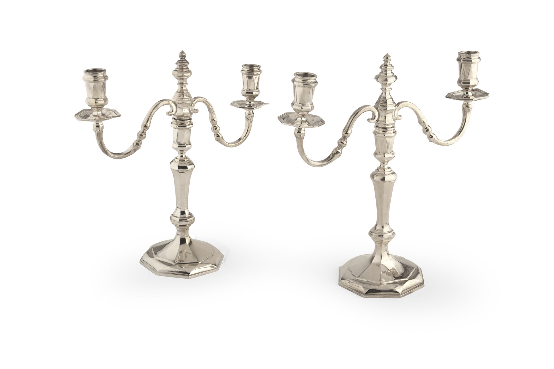 A pair of Britannia standard twin light candelabra