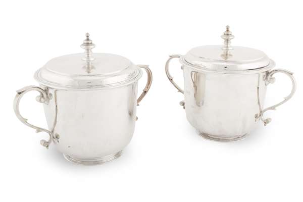 A pair of modern porringers and covers