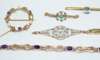 to include an Edwardian seed pearl and rose cut diamond set bracelet; an Edwardian 9ct rose gold amethyst set bracelet; a 9ct gold mounted seed pearl and amethyst set open circular brooch; a turquoise and seed pearl set bar brooch and a 9ct gold circular aquamarine set bar brooch (5)