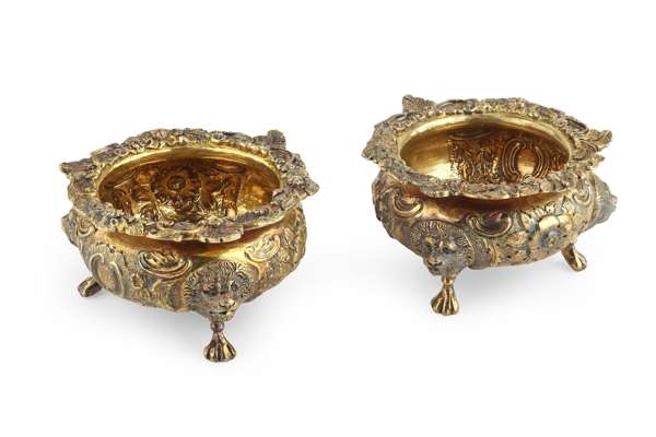A matched pair of Victorian silver gilt large open salts