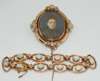 composed of nine oval links with central oval opal and knotted links joining opal set snap clasp, together with a Victorian gold momento mori brooch with painted portrait and hair to rear glazed panel (2)