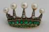 set with two rows of graduated circular cut emeralds, surmounted by graduated old European, single and rose cut diamonds, terminating in five graduated pearls
