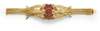 with central floral motif, claw set with circular cut rubies, flanked by tassels to a two-row textured 'V' link bracelet, clasp stamped 750