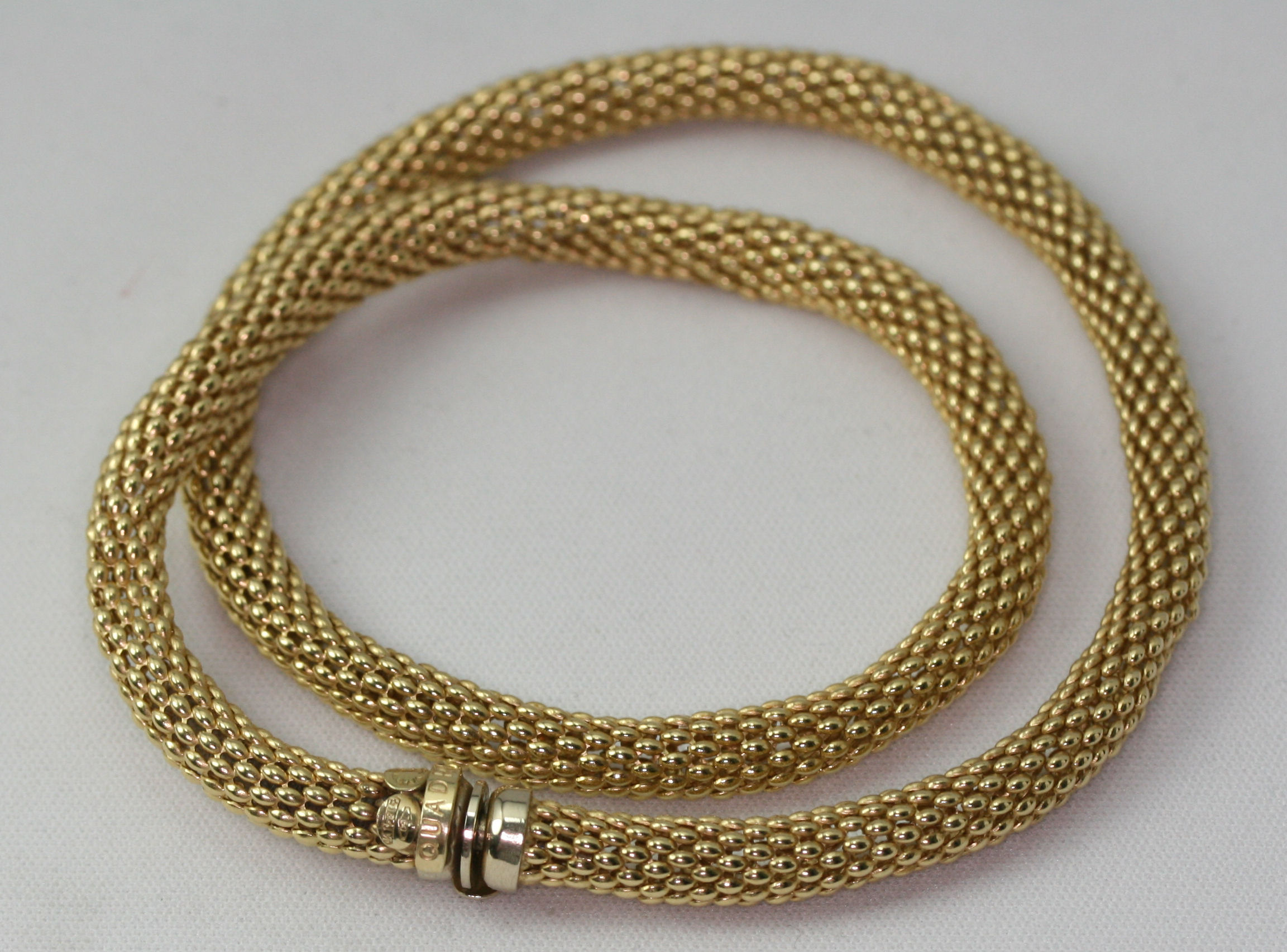 of hollow design composed of mesh form links, with circular clasp stamped QUADRI 750