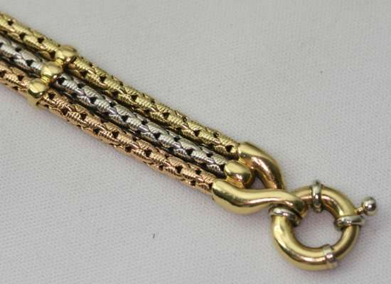 A contemporary three-coloured gold bracelet