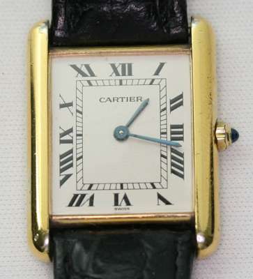 the cream rectangular dial with black Roman numerals, with circular cut blue cabochon set winder, fitted to a black crocodile leather strap, case signed and numbered to reverse 67404 6 81006