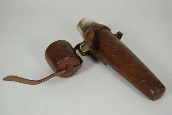 St Petersburg, circa 1900, of tapering form, screw off cover with chain, plain body in a leather sleeve