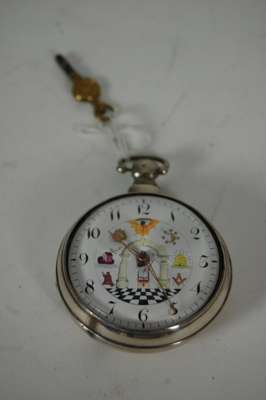S Pemberton Birmingham 1818, the verge movement signed David Hudson, Otley, the large white enamelled dial with Arabic numerals, the centre of dial with vari-colored enamel masonic symbols