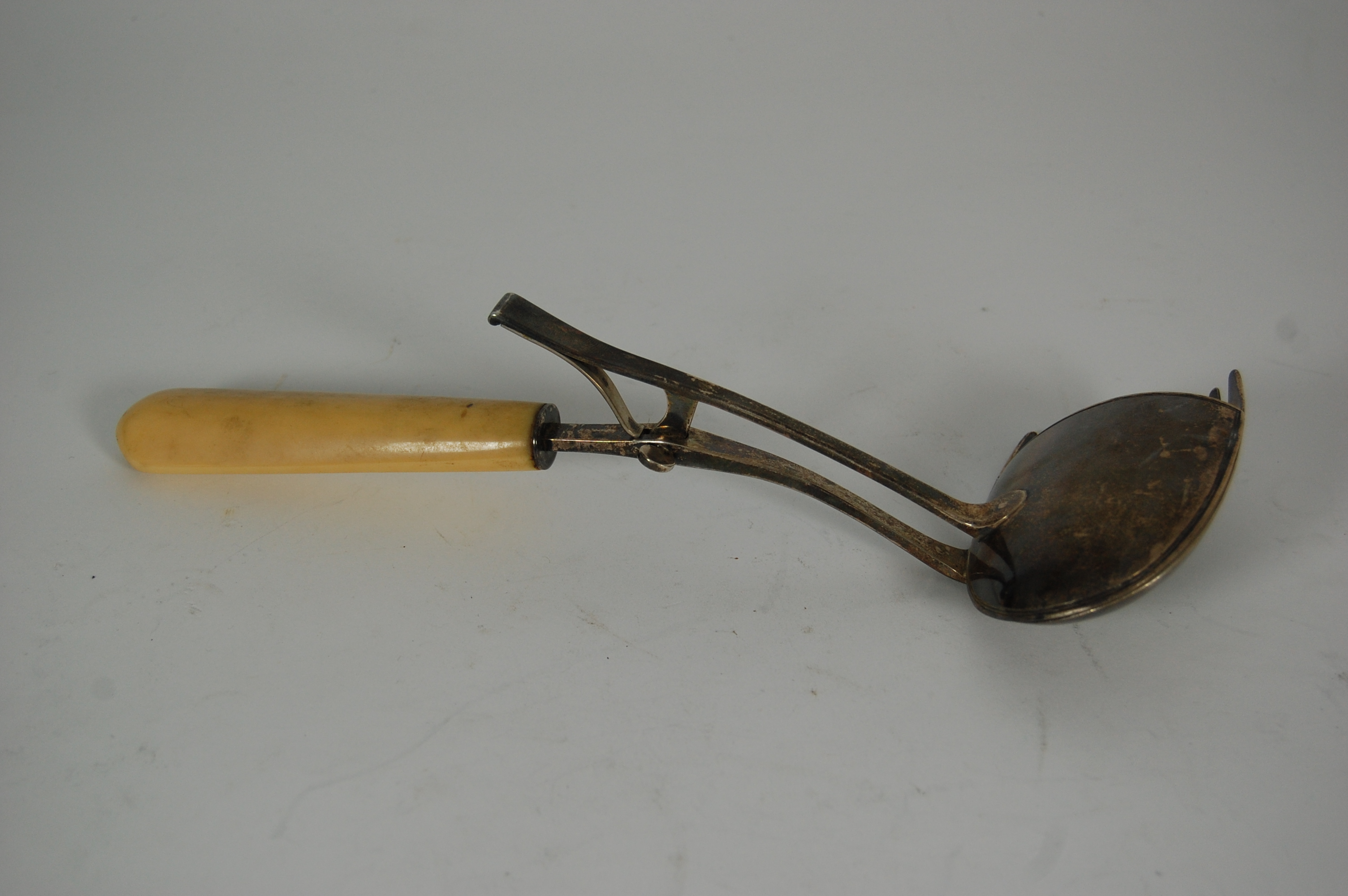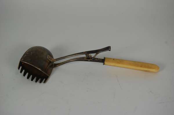 E, London 1801, the hinged server with fork lower section and domed cover, with simple ivory shaped handle