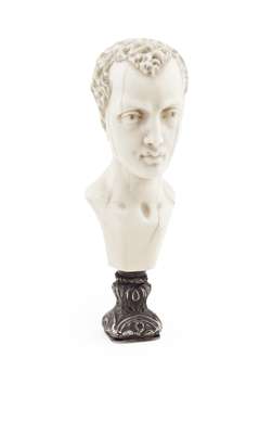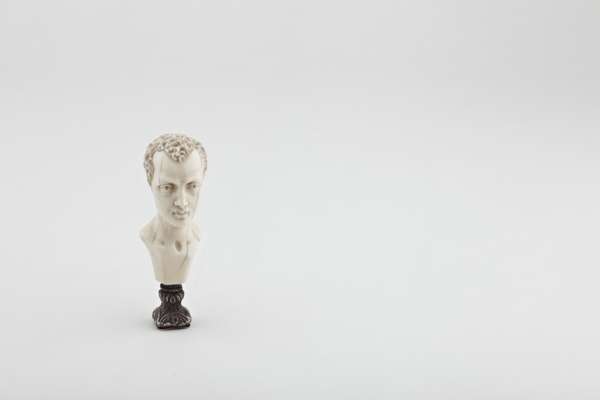 the carved ivory handle formed as a gentleman's bust, above foliate details to the seal with blank matrix