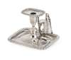 John Emes, London 1807, the square base with ovolo border and centrally set with knopped stem with pull out square sconce with ovolo border, the single loop handle with oval thumbpiece and conical snuffer attached by chain