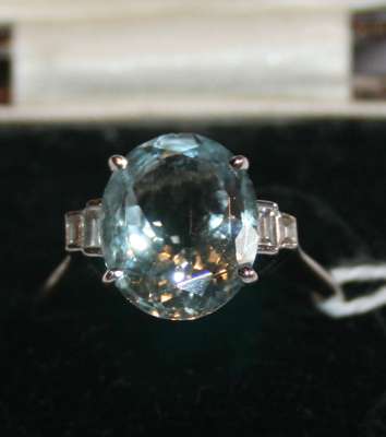 An aquamarine and diamond ring,