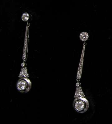 A pair of diamond pendant earrings